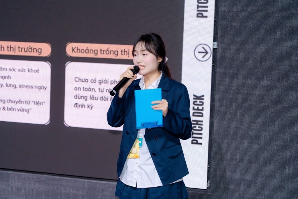 Ảnh 1: Công Dung Ngôn Hạnh Tam Tòng Tứ Đức tự tin tỏa sáng tại sân chơi Đấu trường Khởi nghiệp 2025 cùng dự án Warm Heal Herb.