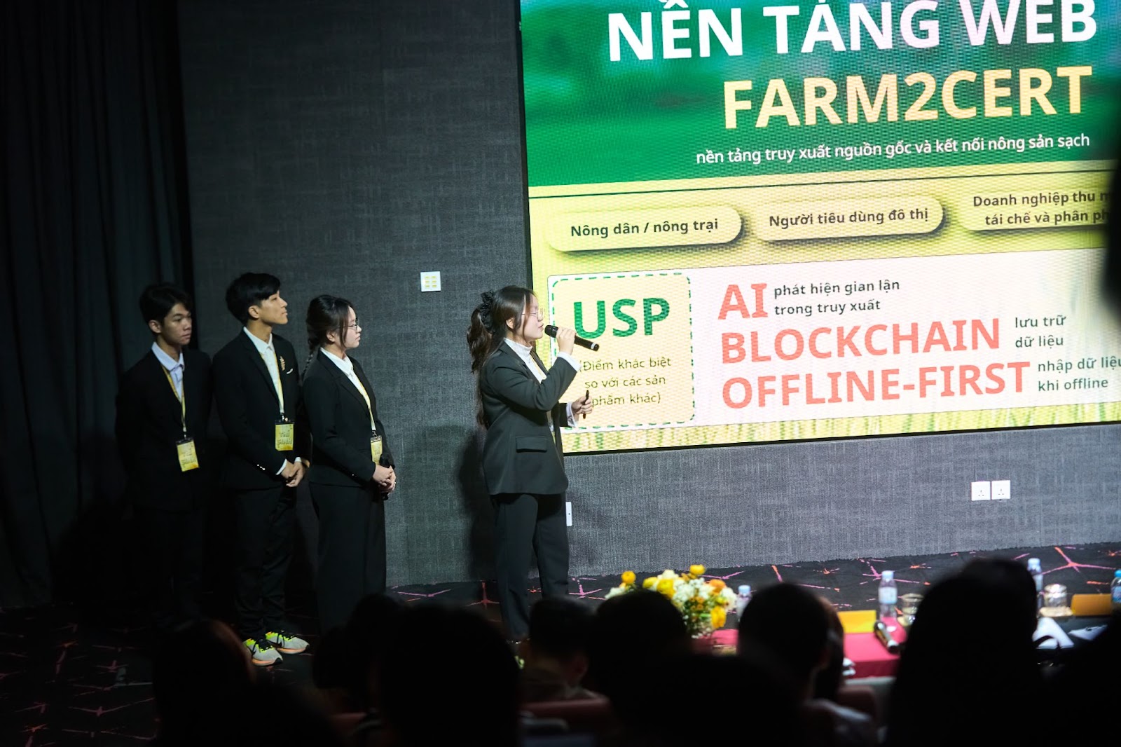 Tại Đấu Trường Khởi Nghiệp 2025, Farm2Tech đã tự tin thuyết trình về nền tảng Web Farm2Cert đã cho thấy sự chuẩn bị bài bản về mặt kỹ thuật: